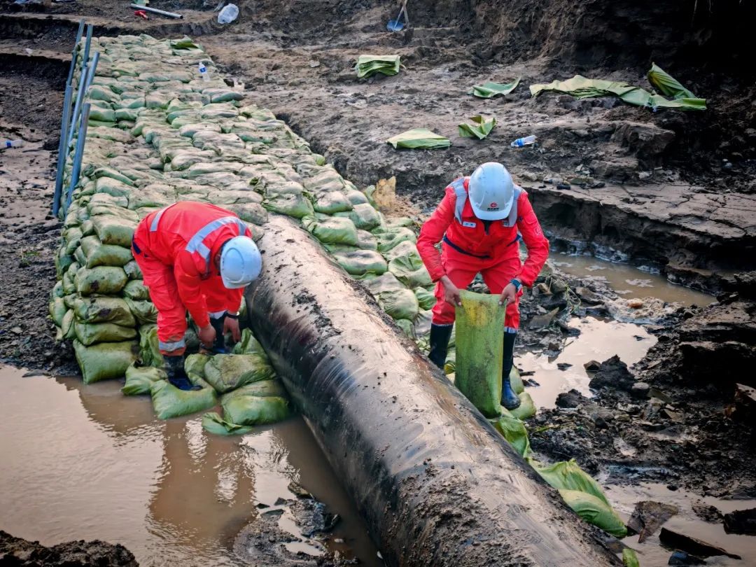 連續暴雨導致陜京一線管道山西省朔州市應縣段突發多處險情。國家管網集團北京管道公司青年員工主動請戰,組建搶險突擊隊,迅速趕赴搶險現場,爭分奪秒搬運沙袋、加固管道,確保管道安全平穩運行。